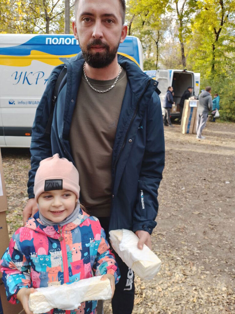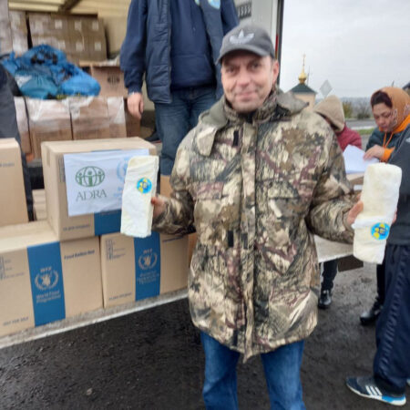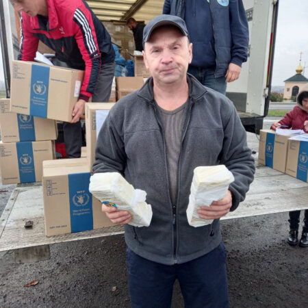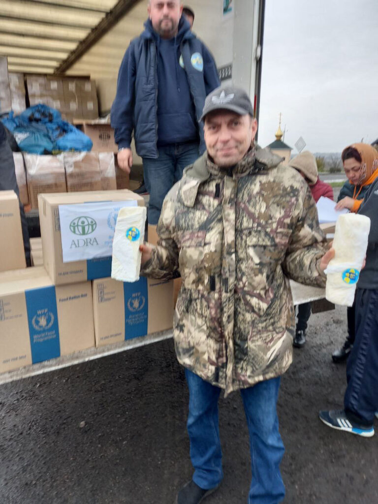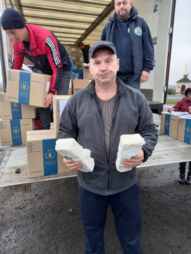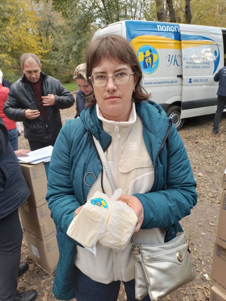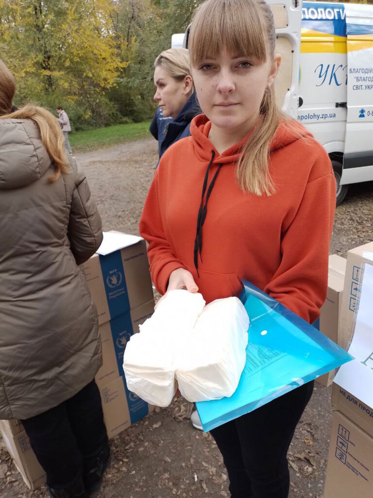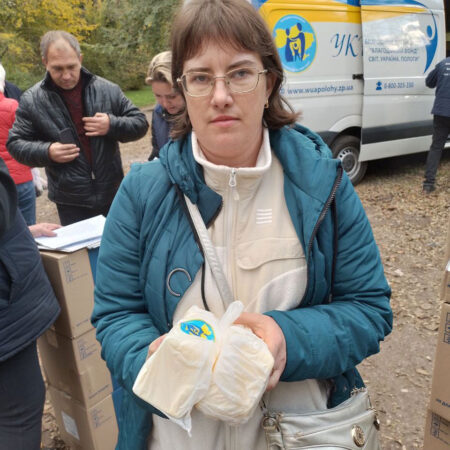 On November 4, the Fund’s vehicles were already on their way to Novomykolaivka and Pokrovske to provide assistance to the residents of the Maliniv territorial community of the Polohy region, who left for these settlements from the temporarily blocked areas. Also, all the resettled people were able to receive food kits, with the support of ADRA Ukraine, and butter.