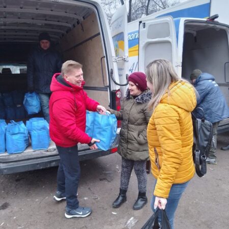 We, Ukrainians, have been gaining new experience for almost a year now: how to live in conditions when a neighbor-aggressor is trying to destroy your country. And God grant that we will not need this experience in the future. During this time, we have already lived several lives: in occupation, in de-occupation, as displaced persons, unemployed, homeless… between mass shelling, under shelling… We start each new day by watching the news, and the successes of our boys at the front motivate us more than personal property. Moreover, the losses of the enemy please us. Does anyone think this is cruelty? No, this is a normal reaction to encroachments on our lives, our homes, and our territory. In this nightmare today, have you noticed how much love has become? It turns out that loving your fellows as yourself is already a necessity, because it is one of the threads from which victory is woven. It is so important that these threads do not break. This is how the threads of empathy, mutual help, and trust that connect us with our compatriots, who are in difficult conditions, are becoming stronger every day. On January 26-27 and February 1, 2023, in Zaporizhzhia city, the Fund provided food kits (with the assistance of ADRA) to internally displaced residents from the territory of the Huliaipole community of the Polohy region, and, in addition, butter, lard, and canned beans.